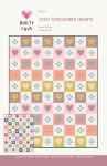 The new heart quilt pattern is called Cozy Checkered Hearts. It's a cozy, vintage-inspired heart quilt with several design options. It combines classic heart blocks with simple nine-patch blocks.