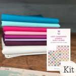 Our kit features Art Gallery Pure Solids. Creates large throw size finishing 60” x 72”. The top 6 colors are the "Heart Block Fabric", the darker purple is the "binding" and "nine patch accent fabric" and the ivory Eyelet is the background.